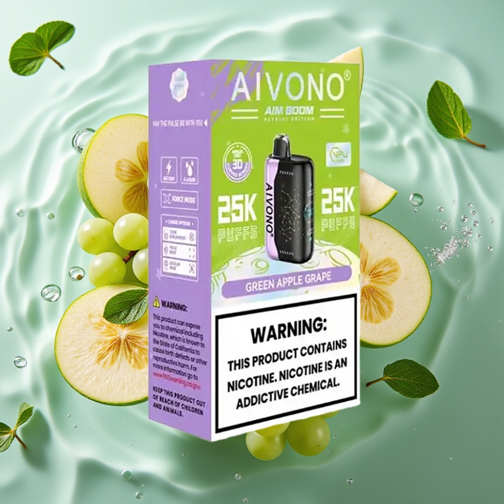 Aivono AIM BOOM 25000 Puffs Disposable Vape Green Apple Grape – 5% Nicotine, 650mAh, Type-C