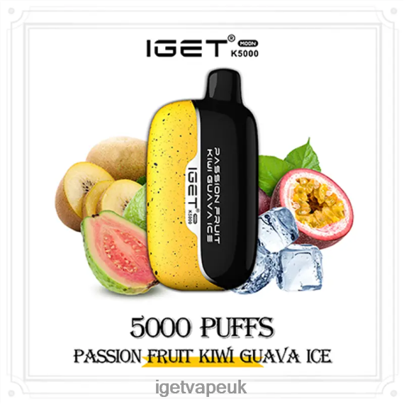 IGET Moon Passion Fruit Kiwi Guava Ice is fresh and spirited, catering to smokers looking for a cool and tasty experience.